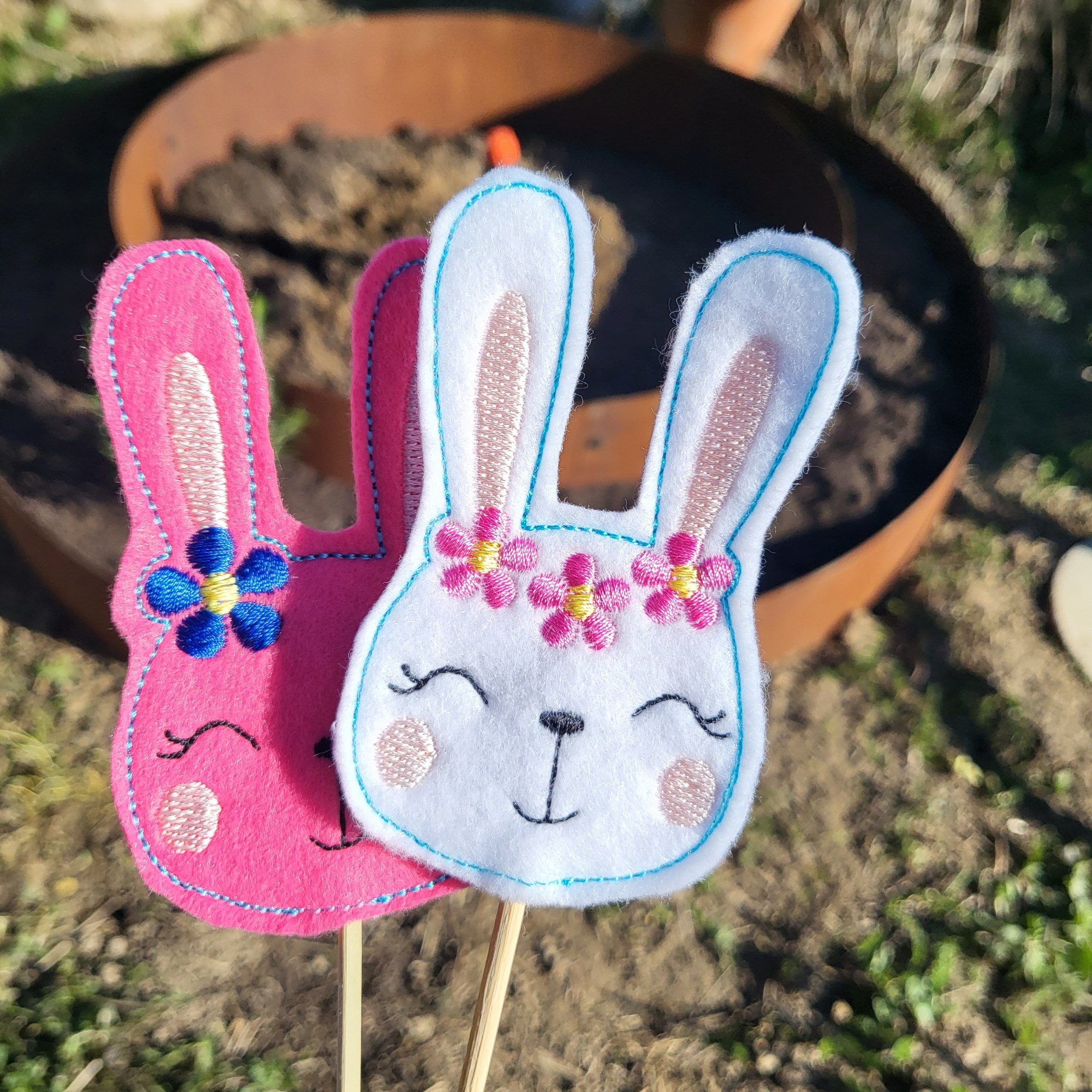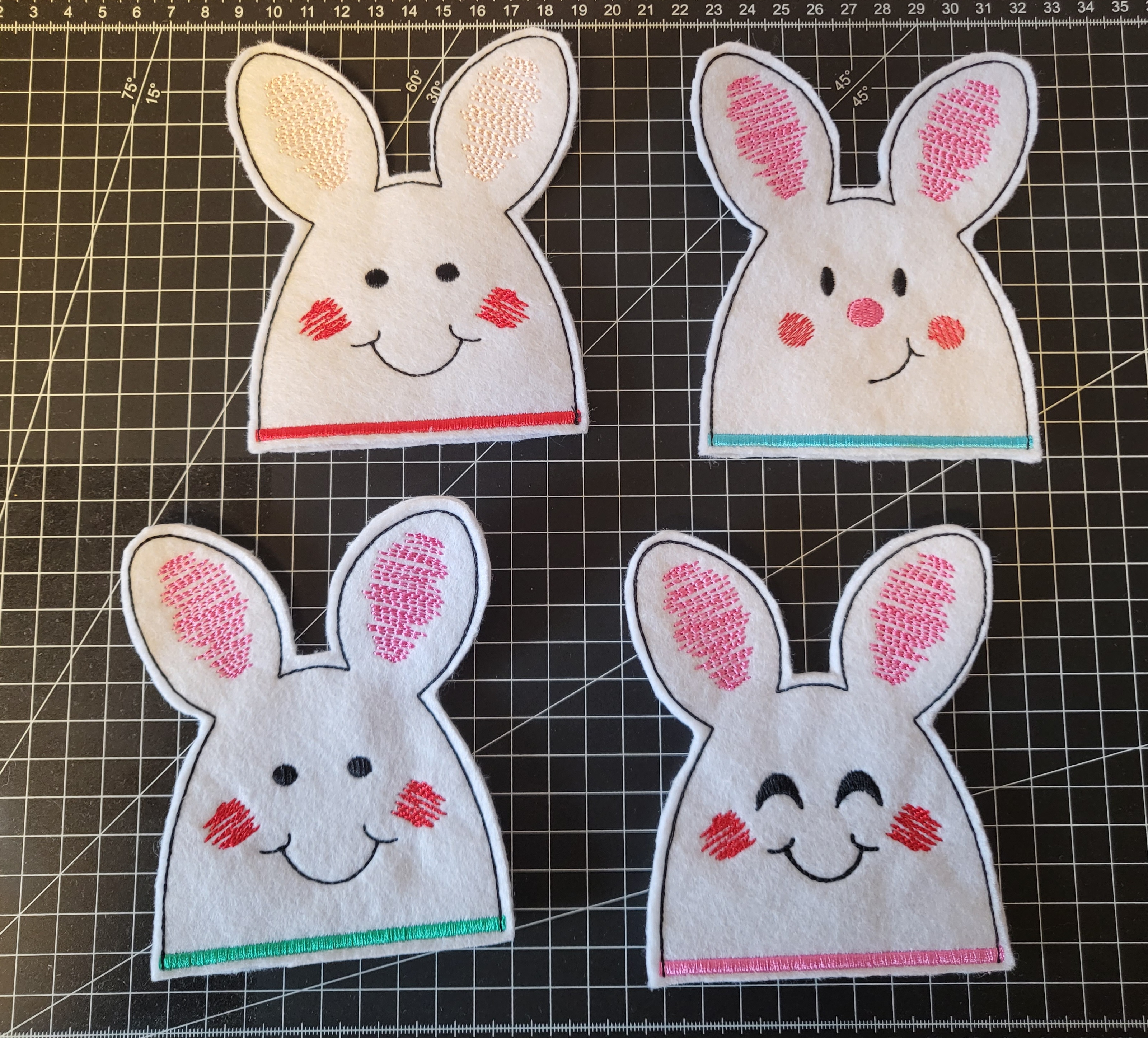 Nachdem ich im letzten Jahr so viel Spaß an der ITH-Technik hatte, war klar: Zu Ostern muss unbedingt wieder die Stickmaschine rattern! Dieses Mal habe ich mich an süße Osteranhänger und Osterstecker gewagt – und zwar in Form von kleinen Häschen. Die Stickdateien habe ich bei Stoffcut auf Etsy gefunden und war sofort begeistert von den verspielten Motiven.