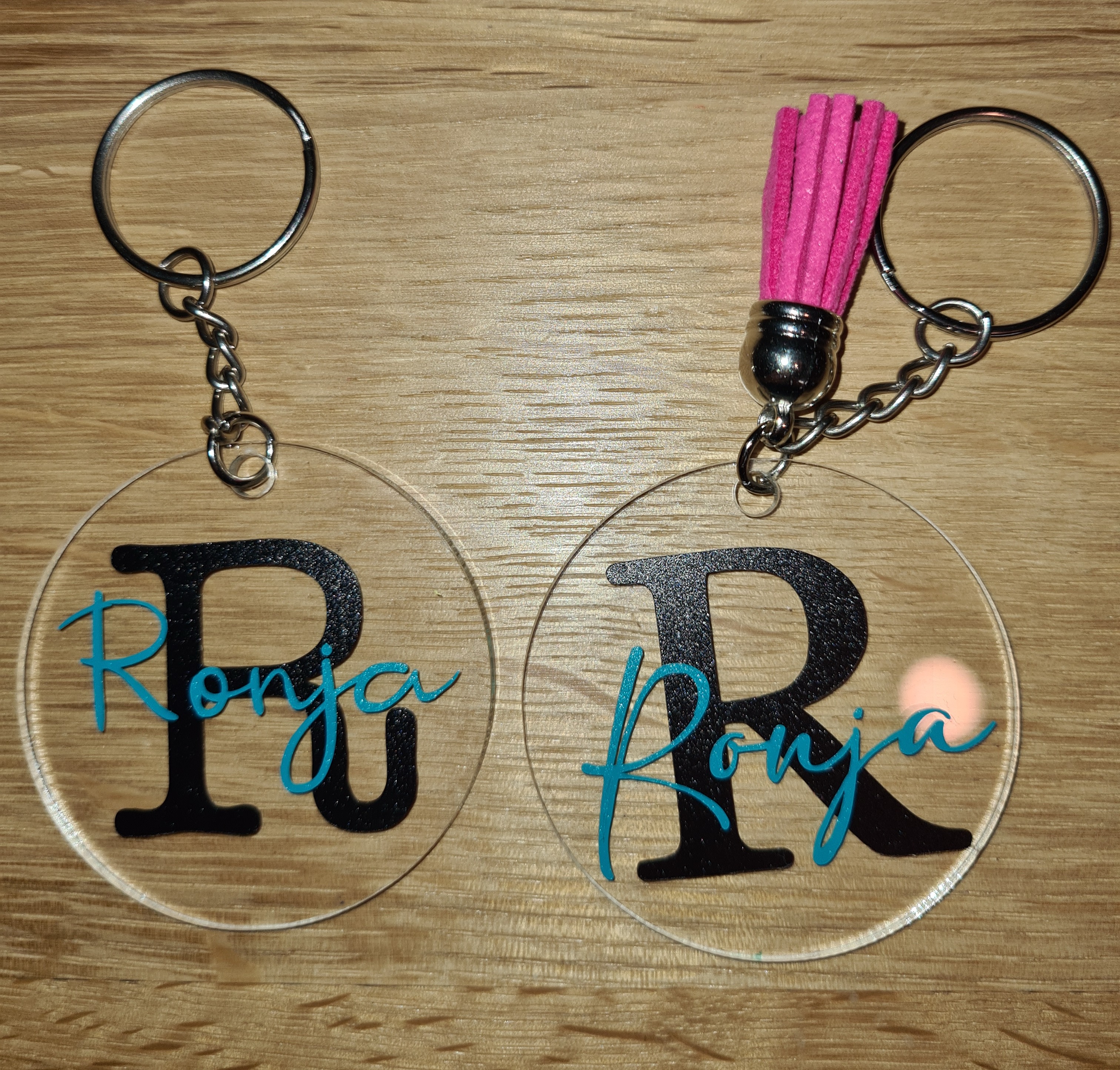 Wer sagt, dass Schlüssel nur langweilige Begleiter sein müssen? Mit selbstgemachten runden Acrylanhängern, die den eigenen Namen und den Anfangsbuchstaben tragen, wird jeder Schlüsselbund zum kleinen Unikat! Die Rohlinge gab’s – wie so oft – beim großen A, aber mit ein bisschen Recherche findet man sie bestimmt auch bei anderen Händlern. Das Beste: Im Cricut Designspace lässt sich die Vorlage für den Namen und den Buchstaben ganz individuell gestalten, sodass jeder Anhänger einzigartig wird.